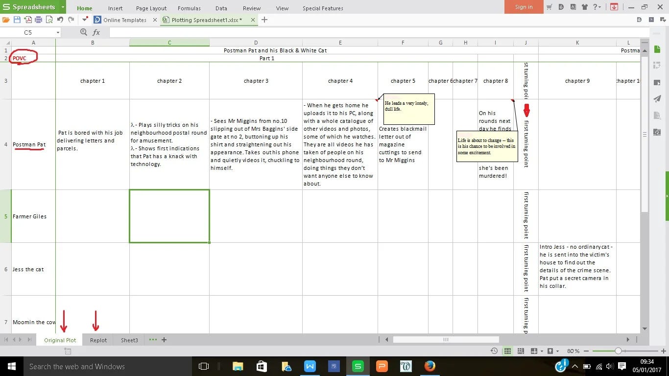 If you’ve been following my series NaNoWriMo What Next? You’ll know there’s been quite a few references to using a spreadsheet to track your plot. It’s been pointed out to me that it would be helpful to have a screen shot of this tracker, so all of you understand what I mean.